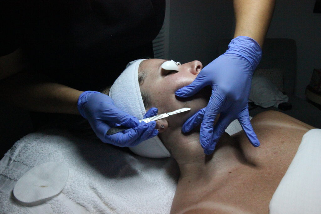 Method of exfoliation that consists of using a scalpel to gently shave off peach fuzz and the top layer of dead, dull skin cells in order to reveal a smoother, brighter complexion.