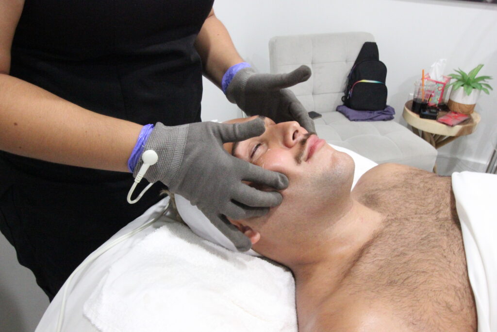 Microcurrent helps to tone, tighten, and lift the skin. The low-level electrical current also increases ATP which is the energy that powers cellular turnover. It’s a non-invasive way to get a mini face-lift.